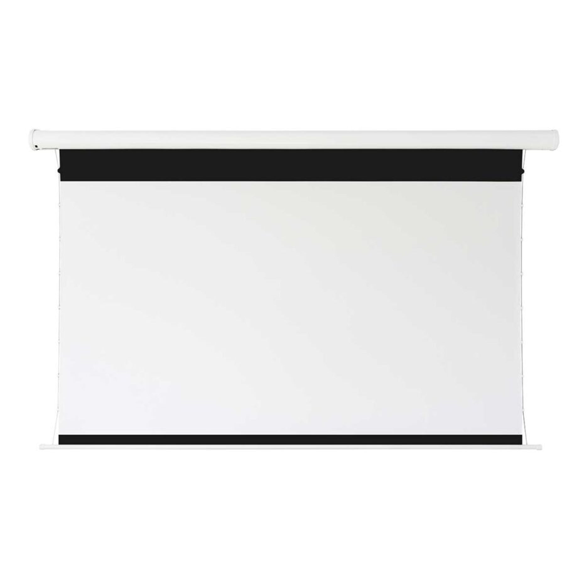 Its elegant white arc-shaped housing allows it to be flush mounted on a wall and includes a pair of brackets for flush ceiling installation. Full control kit included to operate the screen right out of the box for a true plug and play solution.