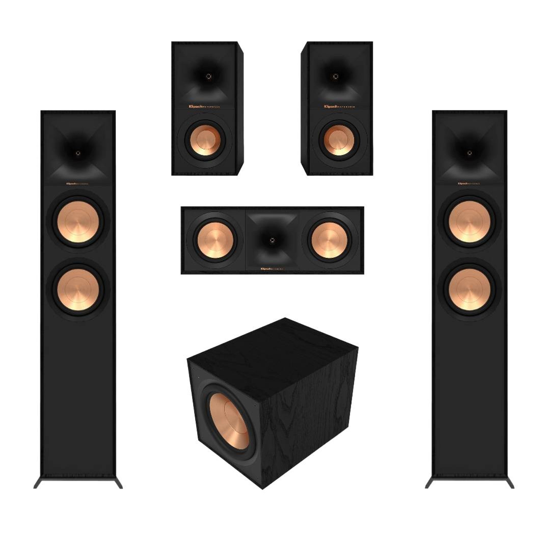 - R-600F Floorstanding Speakers (Pair) – Dynamic, room-filling sound with dual 6.5” woofers and Klipsch’s signature 1” horn-loaded tweeter.