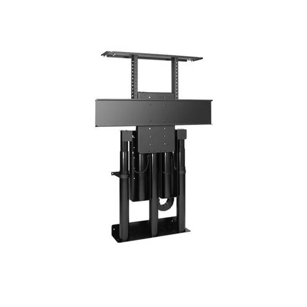 Model L-90 combines high performance with elegant design and a simple user interface. Specifically engineered for use with large TV screens, the nearly-silent telescoping lift mechanism provides smooth motion, ease of use and total reliability. Installation is straightforward and requires less time and cost than other systems of this size.