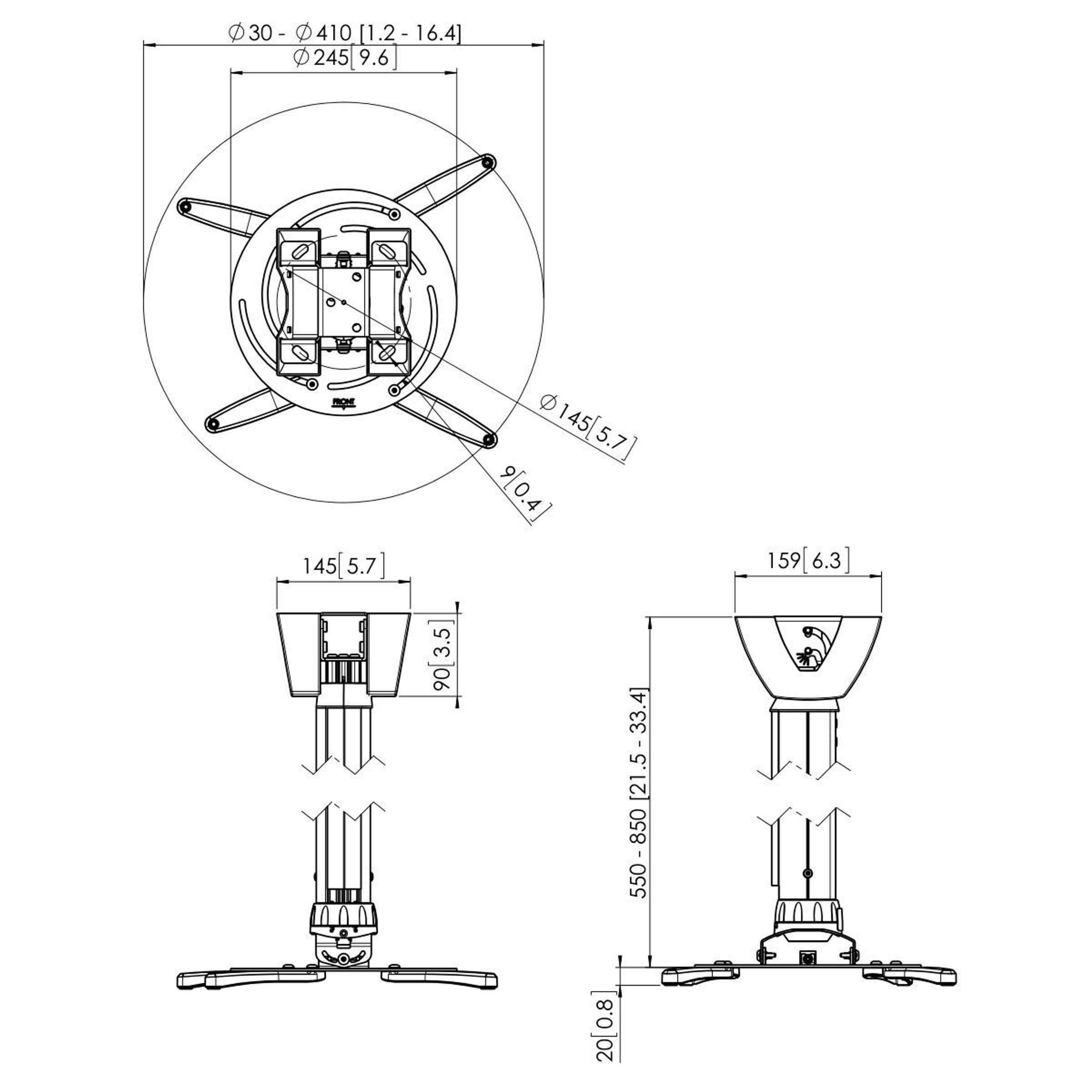 The height adjustable projector ceiling mount kits can be used when the height of the ceiling is not known or when flexibility is wanted. These mounts come in 3 lengths offering variable height adjustment from 400 to 1350 mm. The Cable Inlay System runs the full length of the pole and even allows for cable routing after installation. The offers sufficient space for all cables required and enables you to hide all the cables in a matter of seconds.